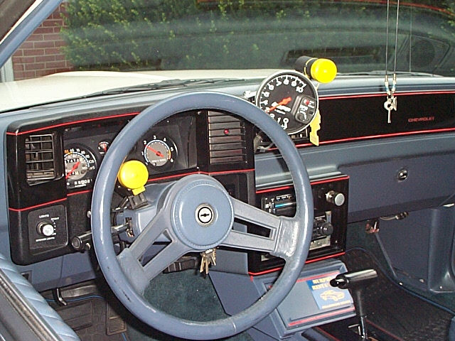 The only cosmetic changes between the 83 and 84 Super Sports was the option of ordering blue cloth bucket seats, a center console, and a new "sport" steering wheel. The blue and white bench seat was still available but minus the embroidered lettering. The 305 got a horsepower rating boost to 180 horsepower. The only exterior colors available in 83 and 84 were white with 2 tone blue striping, or dark blue with 2 tone blue striping. The darker tone of the stripes was similar to the blue color of the car so that the impression was given of only one stripe. The TH200-4R tansmission was listed as a dealer option in 84, but production problems and delays prevented all but three 84 SS's from recieving one. Additionally the ashtray was moved to the center console ahead of the shifter in 84 SS's with the Bucket seat option.